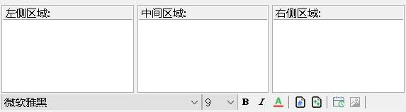 单击“设置页面”或“设置页脚”按钮,会弹出相应的对话框(如图),可以在左、中、右三个文本框内输入相应的信息,将光标定会后,可单击“页码”,在光标处会自动添加@PAGE_NUMBE变量,使其获得当前页数,若想实现“第…页”的效果,可以在光标处输入:“第@PAGE_NUMBE页”;也可单击“总页数”,在光标处会自动添加@PAGE_COUNT变量,使其获得总页数,也可以实现“共…页”的效果,在光标处输入:“共@PAGE_COUNT页”即可。